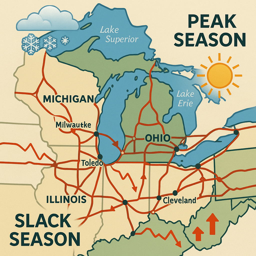 In the unpredictable environment of the Great Lakes region, the mastery of seasonal dry van tracking and demand adaptation is no longer an option, but a necessity. By combining high-tech solutions ― like heatmap analytics and direct meteorological feeds ― with the humans’ rigorous processes of demand planning, resource allocation, and rehiring, freight carriers can flourish through any seasonal holiday surge, winter storms, and summer lulls. With the right mindset and tools at hand, not only will you navigate through the ups and downs of seasonal traffic in the Great Lakes freight but also turn it into a competitive advantage that will lead to profitability and customer loyalty throughout the whole year.